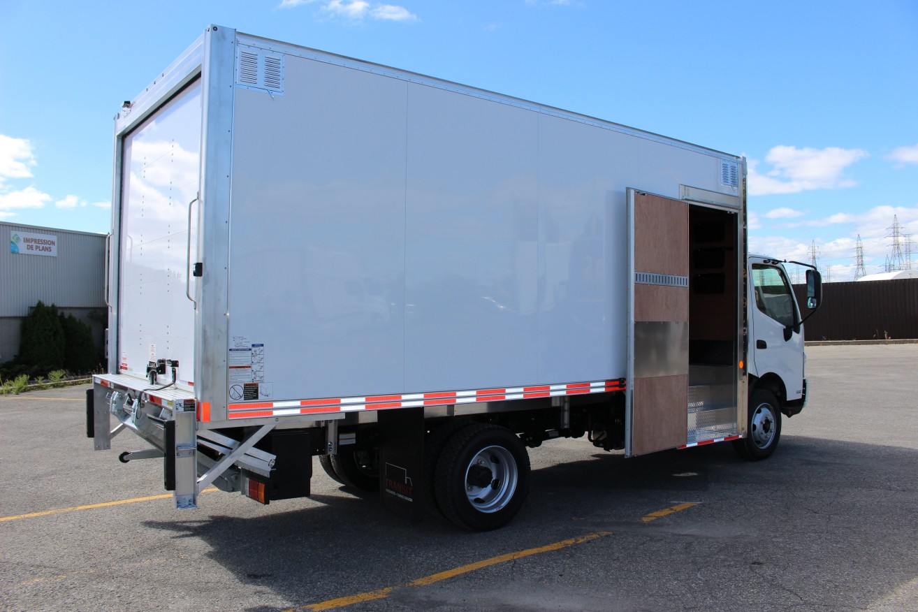 18' Classik™ Truck body (1647465) with side door, triple interior steps, reversed T-floor and Maxon TE-20 STE on Hino 195